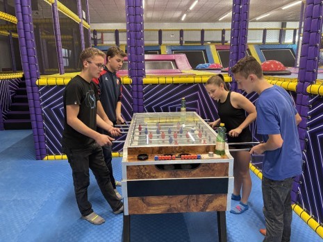 Endlich angekommen im JumpZoneX zogen wir uns schnell um und verbrachten zwei aufregende Stunden in der Trampolinhalle.