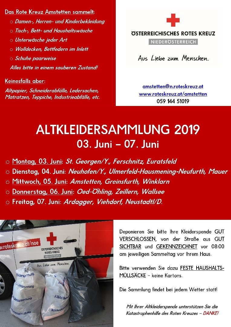 Es gibt heuer keine Sammelsäcke vom Roten Kreuz. Bitte feste Hausmüllsäcke verwenden!