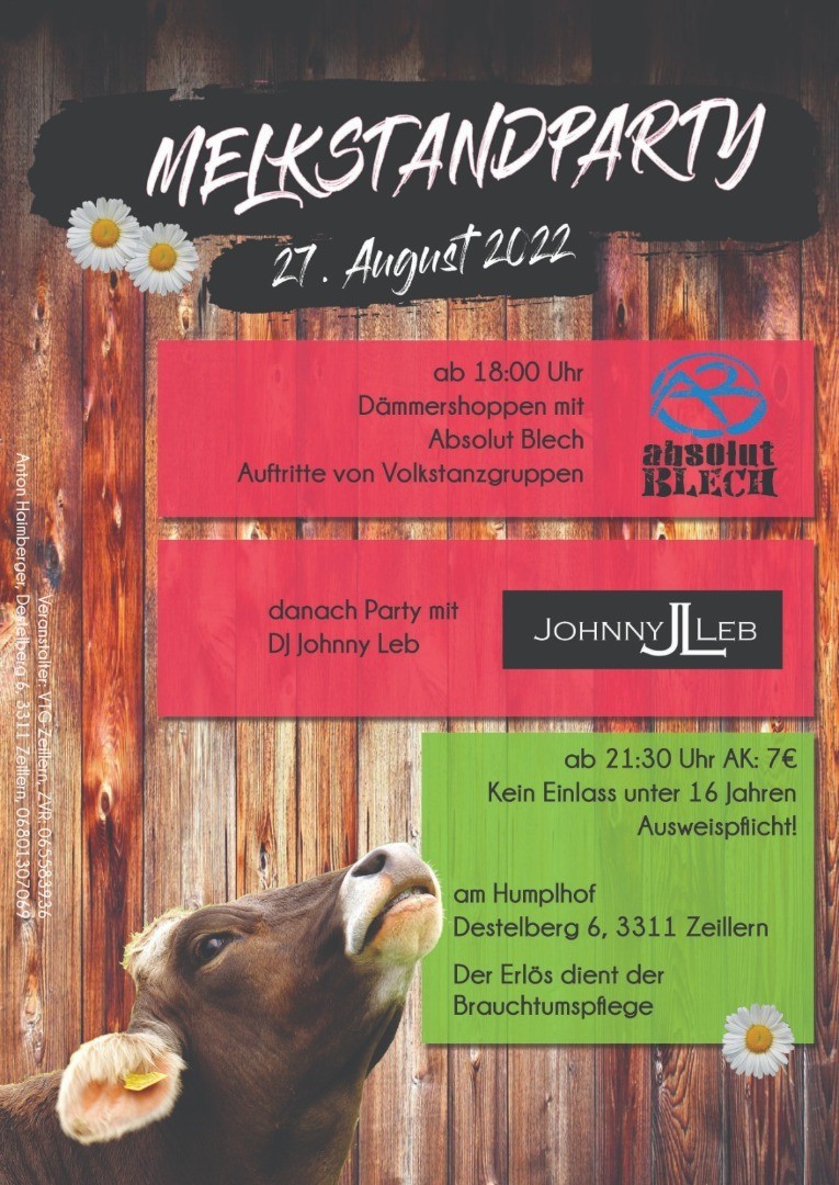 Die Volkstanzgruppe Zeillern lädt wieder zur Melkstandparty 2022 ein.