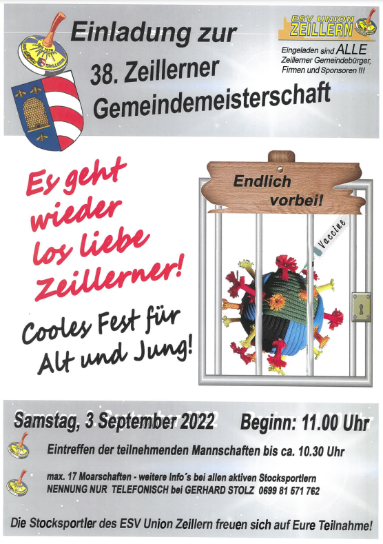 Ab sofort besteht jede Woche am Dienstag, ab 18:30 Uhr, die Möglichkeit zum gemütlichen Stockschießen auf unserer Asphaltanlage in Zeillern. Sportgeräte, Stiele und Plattenmaterial sind ausreichend vorhanden. Alle Zeillernerinnen und Zeillerner sind dazu herzlichst eingeladen.