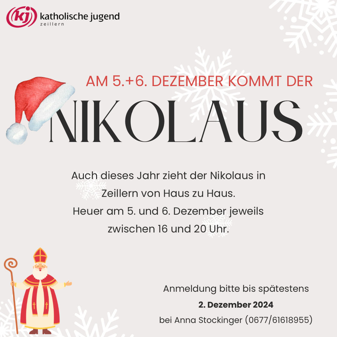 Auch dieses Jahr zieht der Nikolaus in Zeillern von Haus zu Haus. Am 5. und 6. Dezember jeweils zwischen 16 und 20 Uhr.