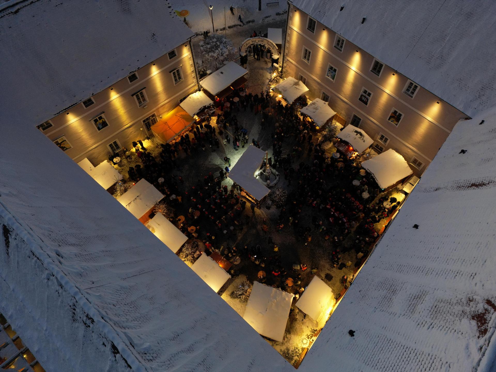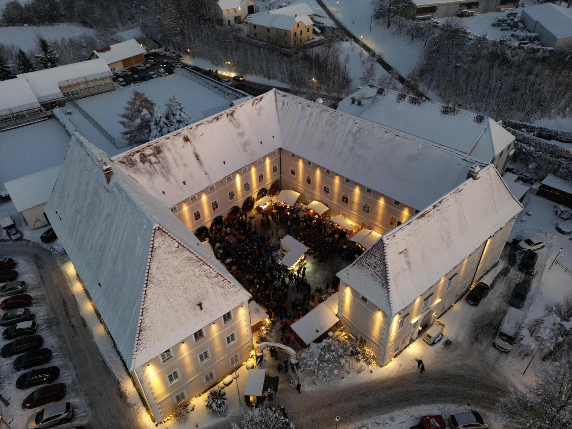 Ein Highlight war der Nikolaus-Einzug, der auch dieses Jahr wieder vom MSC organisiert und von unserer Musikkapelle begleitet wurde. Ein herzliches Dankeschön allen Akteuren dieses beeindruckenden Rahmenprogramms! Im Hof des Schlosses sowie in den Seminarräumen und im Festsaal konnten die Gäste kulinarische Köstlichkeiten genießen und viel kreatives Kunsthandwerk bestaunen, und auf der Schlosswiese durften die Alpakas nicht fehlen.