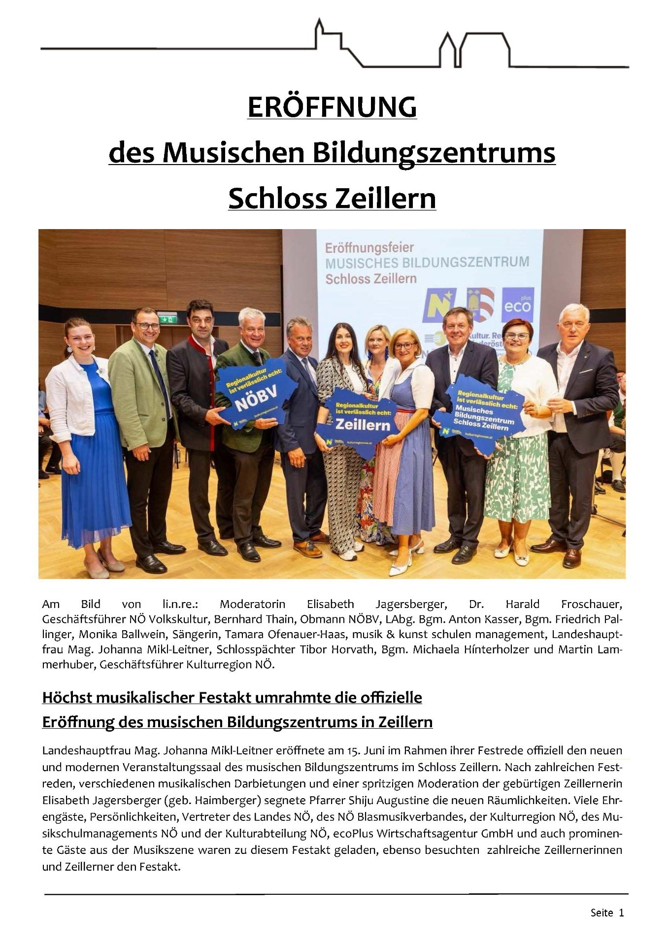 Eröffnung des Musischen Bildungszentrums Schloss Zeillern