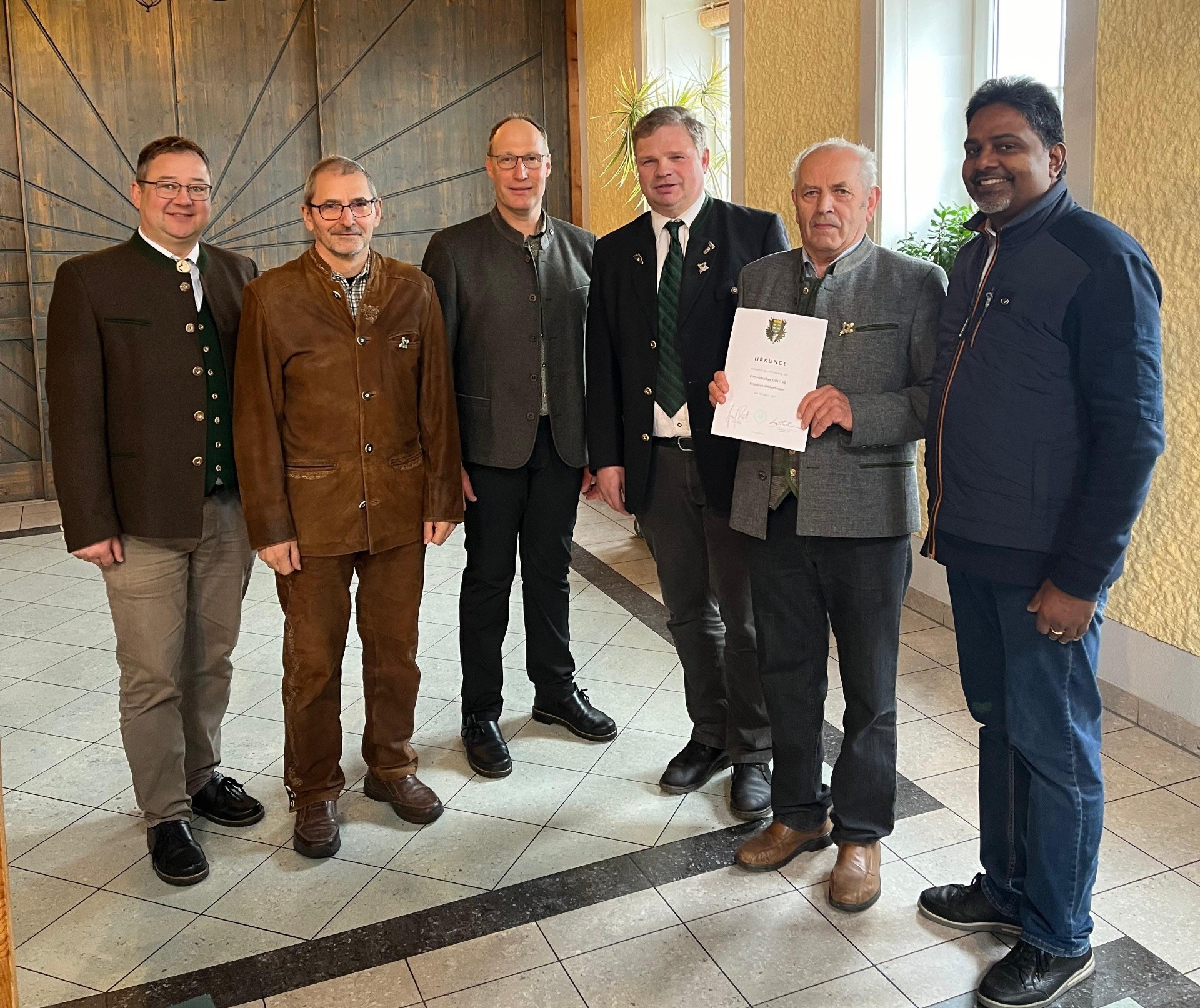 Im Anschluss wurden Ehrungen im Gasthaus Spreitz abgehalten. Den Silbernen Ehrenbruch für 40-jährige Jagdmitgliedschaft erhielt Ambros Nagelhofer und eine besondere Auszeichnung wurde Ehrenjagdleiter Friedrich Hinterholzer mit dem 2. Goldenen Ehrenbruch für 60-jährige Jagdausübung überreicht. Hegeringleiter Klaus Nagelhofer und Jagdleiter Adi Gruber würdigten seine Verdienste für die Jagd.