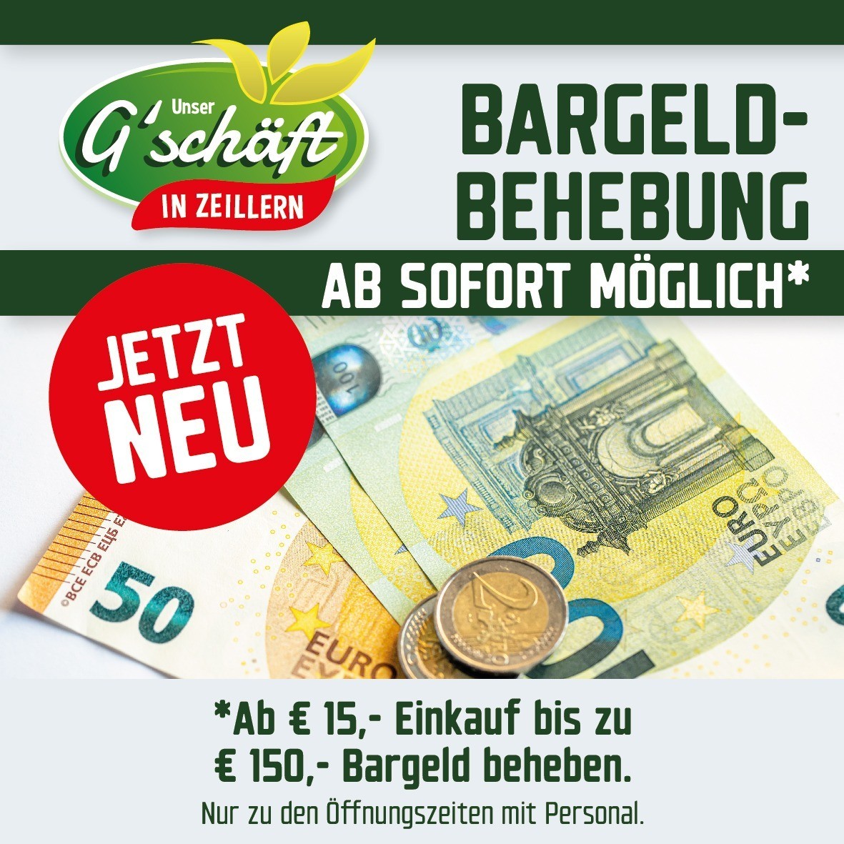 Neu bei uns: Bargeldbehebung direkt im Geschäft!