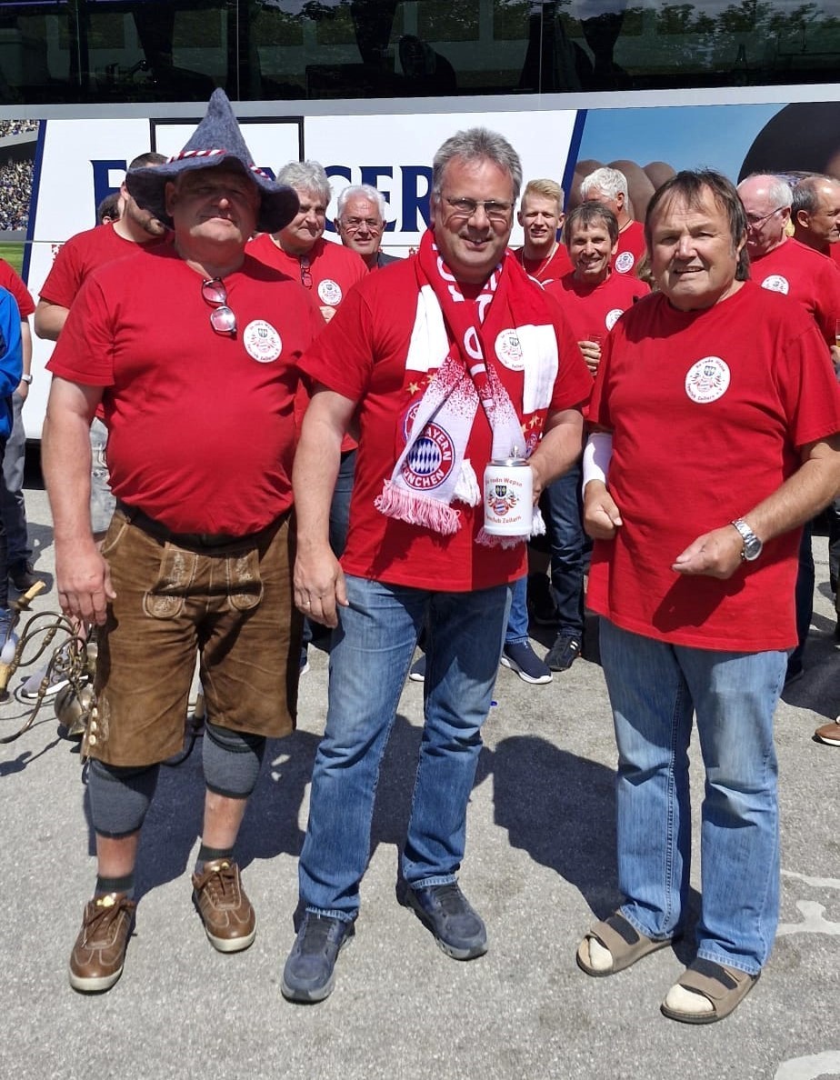 Zum Saisonabschluss der Fußball Bundesliga und letzten Spieltag und natürlich mit der 34. Meisterschaft des FC Bayern München wurde dieser Ausflug geplant und durchgeführt. Auf der Hinfahrt gab es Bier vom Fass aus der Buszapfanlage und sonstigen Getränken sowie eine Brotzeit in gemütlicher Runde.