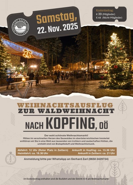 Abfahrt: 12 Uhr (Roter Platz Zeillern)